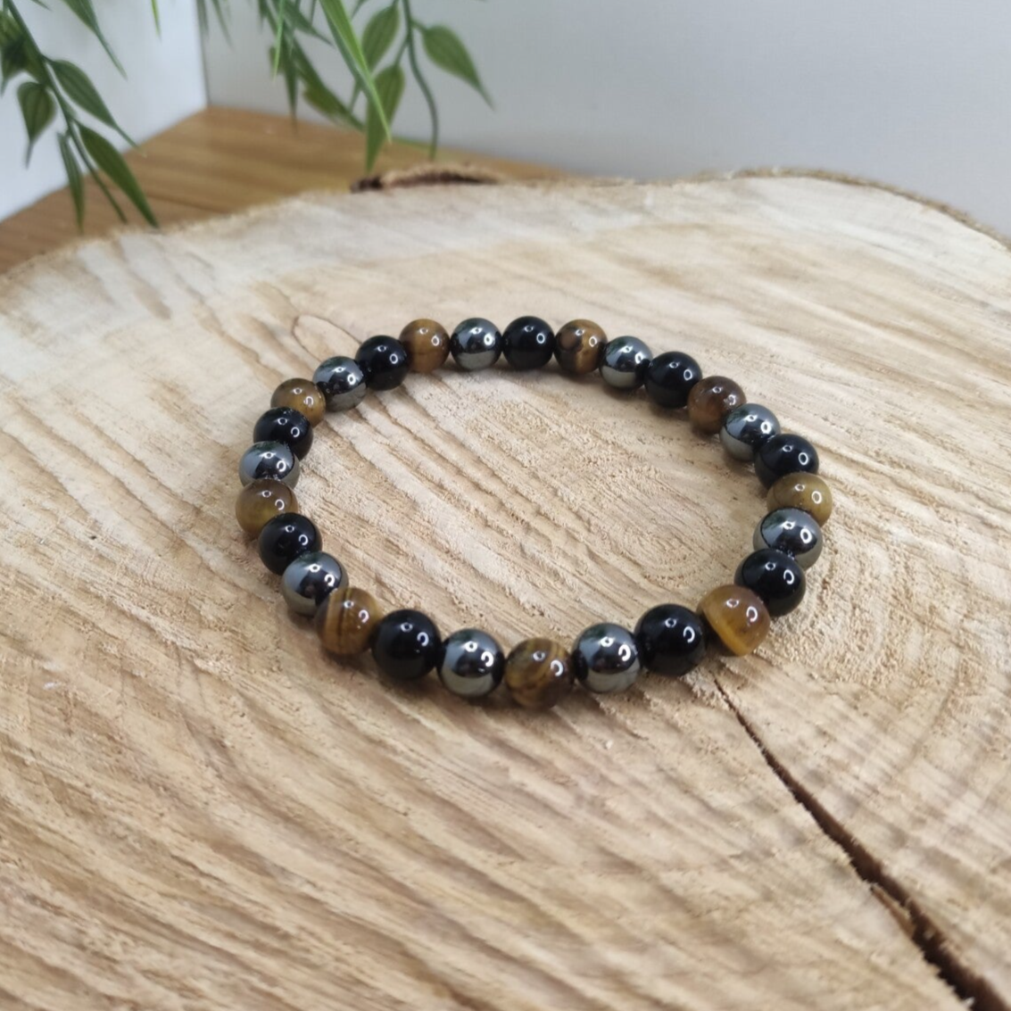Bracelet 8mm en oeil de tigre,hématite et obsidienne