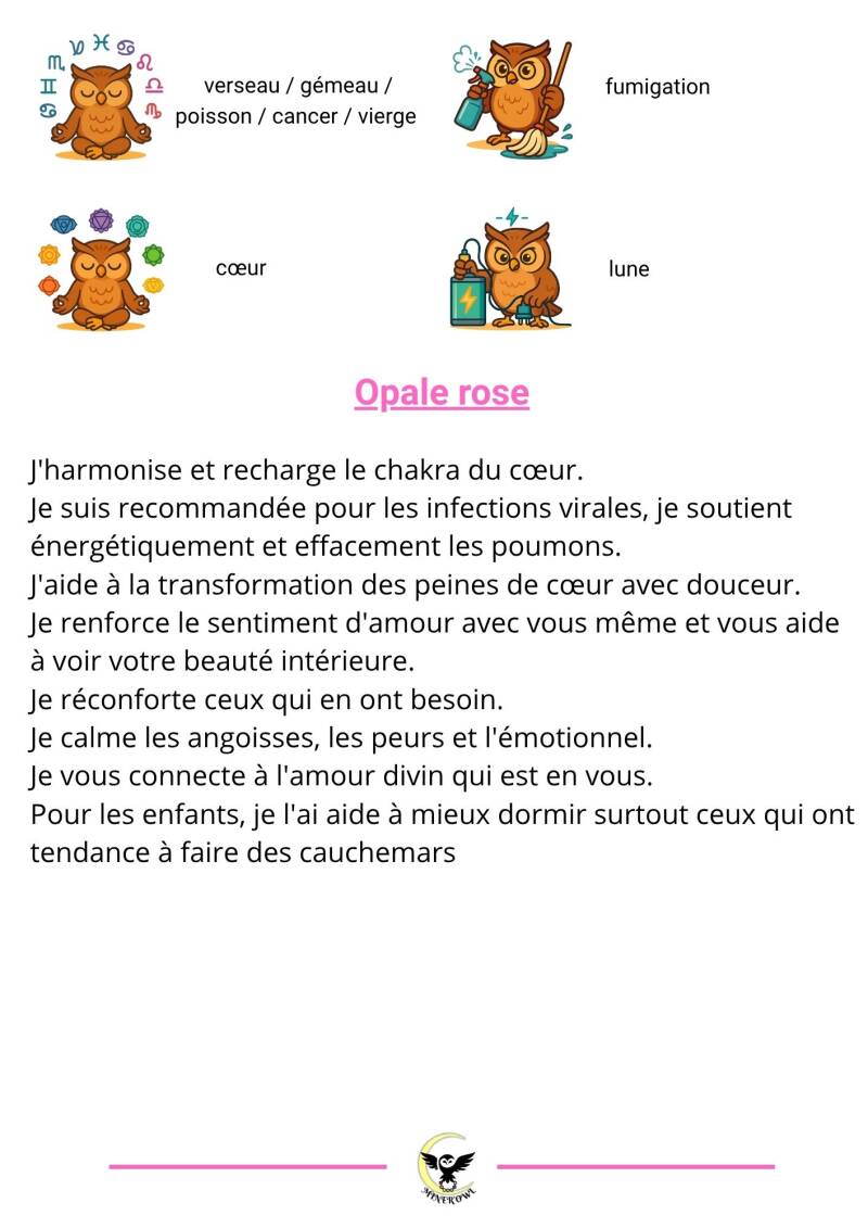 pierres naturelles opale rose et cristal de roche craquelé 8 mm